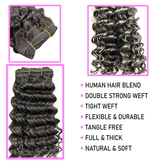 14" Venus Deep Wave Human Hair Blended (3 Pack Deal)